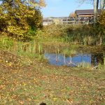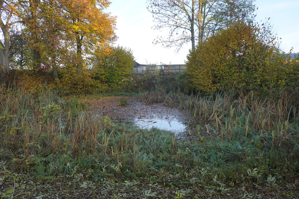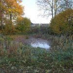8. + 9. Oktober 2017: Sanierung der Haldenhüle: Das Wasser aus der verlandeten Hüle abgepumpt, Schilf- und Binsenbewuchs ausgebaggert, abgefahren, Hülenboden planiert, Hüle vermessen, Zuläufe angelegt, eine Bank gesetzt.