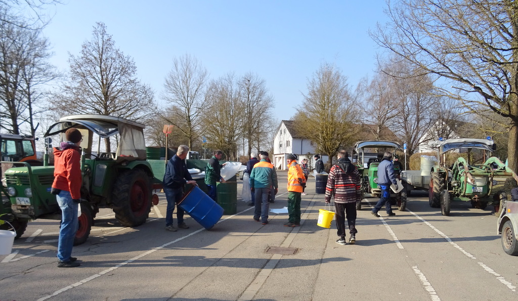 Pünktlich um 09.00 Uhr hatten sich wieder fast 50 Teilnehmer zu unserer Markungsputzete auf dem Parkplatz der Auhalle eingefunden, auch standen genügend Fahrzeuge mit Schlepper, Anhänger und PKWs mit Anhänger bereit. Organisator Heinz Nüßle teilte das Gebiet der Markung für die Sammeltrupps ein, und bei gutem Wetter, jedoch kaltem, böigen Wind machten sich alle auf zur Putzaktion. Kurz vor Mittagszeit waren die Trupps wieder