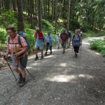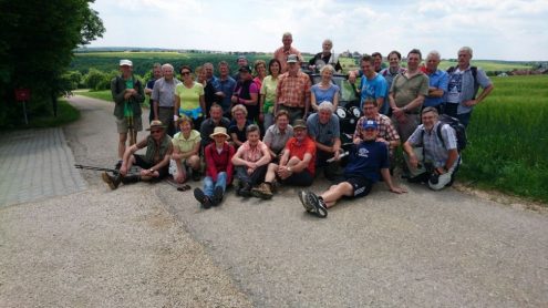 Der Wanderparkplatz am Ortsrand von Degenfeld war unser Ausgangspunkt zu dieser Wanderung. Bei herrlichem Sonnenschein,jedoch auch warmen Wetter wanderten wir auf gutem Weg vorbei an Fischteichen hinauf zum Wald, wo es in der Waldschlucht „Glasklinge“ neben einem plätschernden Bach steil bergauf ging. Bald erreichten wir auf dem Bernhardus die Wallfahrtskapelle, und wenige Meter weiter hatten wir an einem Aussichtspunkt einen herrlichen Blick weit ins Land. Durch den Wald führte der Weg hinunter zum Furtlepass, wir überquerten die Landesstraße und stiegen zum Naturschutzgebiet Kaltes Feld, einer herrlichen unberührten Hochfläche, hinauf. Am Trauf entlang kamen wir zum Aussichtspunkt „Drei-Kaiserberge“, mit einmaliger Sicht auf die Kaiserberge Stuifen, Hohenstaufen und Rechberg, die wir ausgiebig genossen. Nach genügender Pause ging es weiter zum Hornberg mit dem Flugplatz, und es waren mehrere Segelflugzeuge und Motorflieger zu beobachten. Auf einen Abstecher zum Franz-Keller-Haus verzichteten wir, da dieses an den Sonntagen meist sehr stark frequentiert  ist, auch zeigten sich am Himmel bereits dunkle Gewitterwolken, und Donnergrollen war deutlich zu hören. In Bögen führte nun der Weg den Ochsenberg Richtung Degenfeld hinunter, und kurz vor dem Ort setzte der Regen ein, zum Glück nicht allzu stark. Der Weg zog sich durch Degenfeld bis zum Parkplatz, wo wir dann alle wohlbehalten ankamen. Die 12 Teilnehmer erlebten eine sehr schöne Wanderung über etwa 4 Stunden und ca. 13 km unter der guten, informativen Führung von Wanderführer Martin Nigst. Auf dem Heimweg kehrten wir im Landgasthof „Rössle“ in Türkheim ein.
