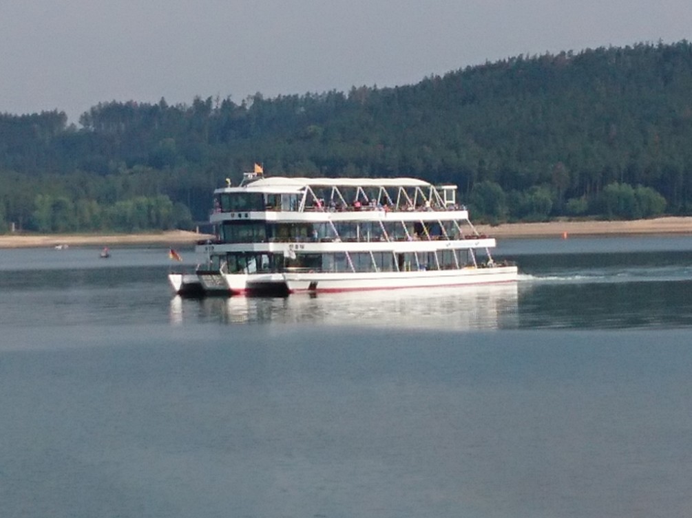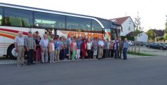 Ein voll besetzter Bus mit 45 Personen startete bei herrlichem Wetter am Sonntagmorgen 07.30 Uhr zur Fahrt an den Brombachsee. Über die Autobahn A7 ging es bei der Ausfahrt Heidenheim nach Neresheim, wo die Klosterkirche stolz herabgrüßte. Durch Nördlingen kamen wir zum Altmühlsee, wo eine kleine Pause eingelegt wurde, und man einen schönen Blick auf den See hatte. Die Weiterfahrt ging nach Ramsberg, wo wir um 11.00 Uhr den Trimaran, das Ausflugsschiff bestiegen. Wir verteilten uns auf den drei Decks, und genossen die 1 1/2 stündige Rundfahrt auf dem See. Nachdem das Schiff wieder in Ramsberg angelegt hatte, machten wir uns auf  nach Hilpoltstein, wo man sich dann auf den Weg zur Stadtbesichtigung machte. Viele der Ausflügler begaben sich auf den Stadtmauerweg, der rund um die Altstadt führt. Bei der Burgruine konnte der Turm bestiegen werden, und man hatte eine sehr schöne Aussicht über die Stadt und weit ins Land. In einem der Strassencafes oder Biergarten ließen wir es uns danach gut gehen. Die Heimfahrt führte uns nach Bernstadt, wo wir zum Abendessen angemeldet waren. Leider war die Autobahn A8 stark frequentiert, es staute sich immer wieder, so dass wir die anvisierte Ankunftszeit 21.00 Uhr in Berghülen etwas überschritten. Es war ein gemütlicher und beschaulicher Ausflug, der bei allen Teilnehmern gut ankam.Organisiert wurde der Ausflug von Reiner Nübling, die Leitung am Sonntag hatte Heinz Nüssle.