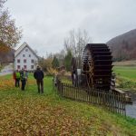 Beim Biosphärenzentrum in Hütten parkten wir unsere Autos und starteten zu unserer Wanderung.  Am Ortsrand kamen wir zur Schmiech, hier war früher eine Schöpfstelle, wo die Wasserfässer mühevoll mit Schöpfern gefüllt wurden. Auf dem Naturweg ging es weiter am Talhang entlang nach Talsteußlingen, wo wir das mächtige Wasserrad besichtigten. Weiter wanderten wir am Talrand entlang, dann überquerten wir