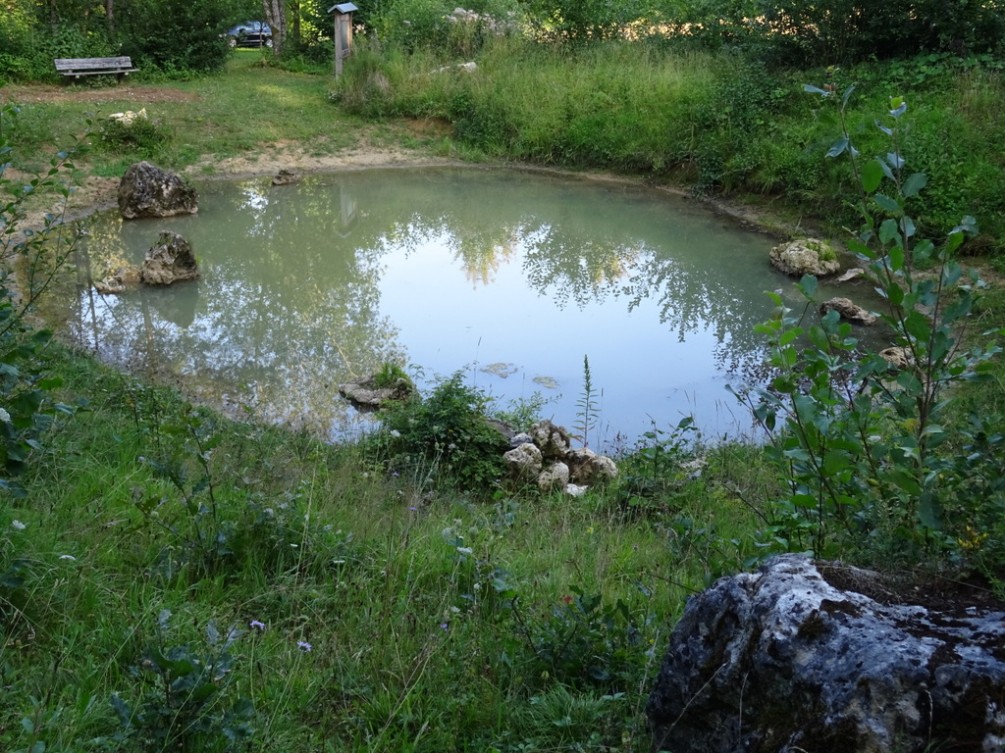 Mit der Behörde besprochen: Der ausgebaggerte Schlamm wurde zunächst am Ufer liegen gelassen, damit die Kleinlebewesen wieder ins Gewässer wandern können. So hatte es der Berghüler Albverein mit dem Fachdienst Naturschutz des Landratsamts Alb-Donau-Kreis besprochen, der die Arbeiten mit Rücksicht auf die Tierwelt auf die Monate September und Oktober festlegte. Die Hüle, die auch schon im Jahr 1994 saniert und damals mit einer Lehmschicht versehen wurde, werde von Insekten und Amphibien gut angenommen, berichtet Gerhard Tränkle. Dort seien viele Frösche und Libellen zu sehen. Der Albverein hat auch Büsche beseitigt, Felsen am Waldrand freigelegt und bei der Hüle eine Ruhebank aufgestellt. Als nächste Aktion werden Landwirte mit großen Fässern anrücken, um die Haldenhüle wieder ganz mit Wasser zu füllen.